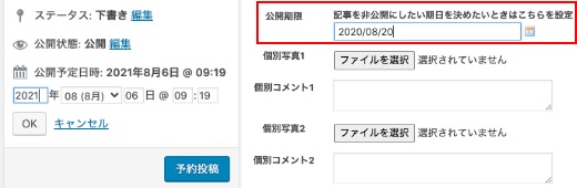 更新ツールには「予約投稿」という、あらかじめ公開する日時を決めて時間になったら自動的に公開する機能が標準でついていますが、一部の項目には、決められた日付が終わると自動的に投稿が非表示になる、掲載期限の設定を付与することができます。